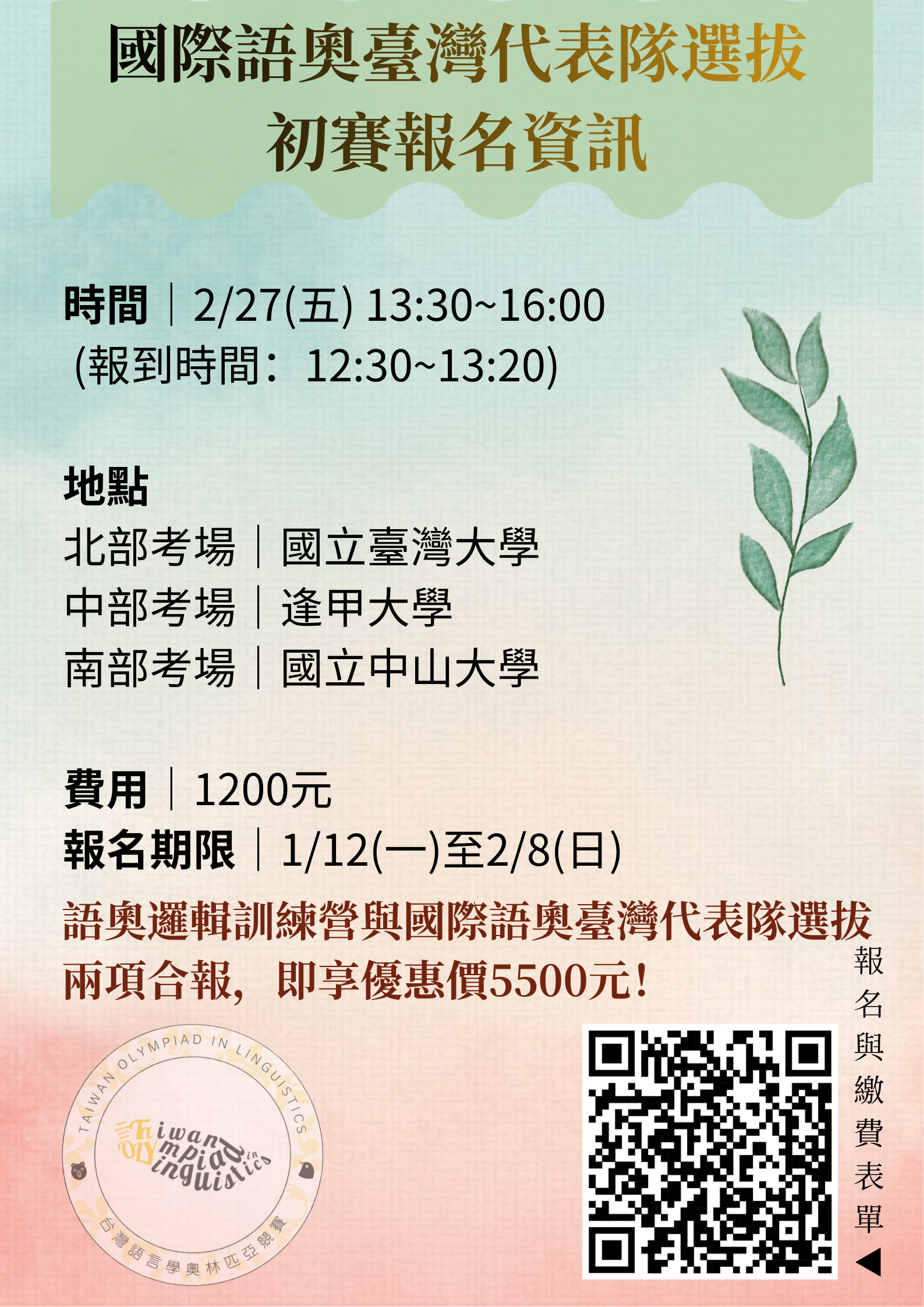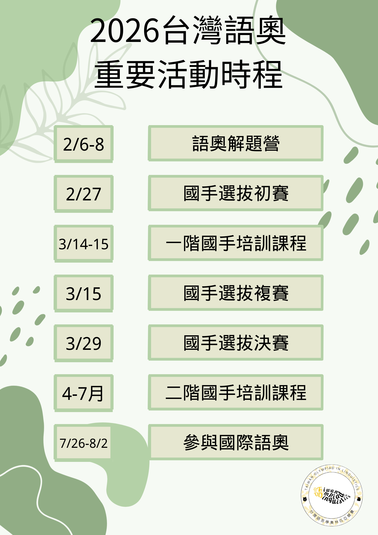2026/01/09 ✨ 國際語奧臺灣代表隊選拔初賽&臺灣語奧邏輯訓練營 正式開放報名!✨