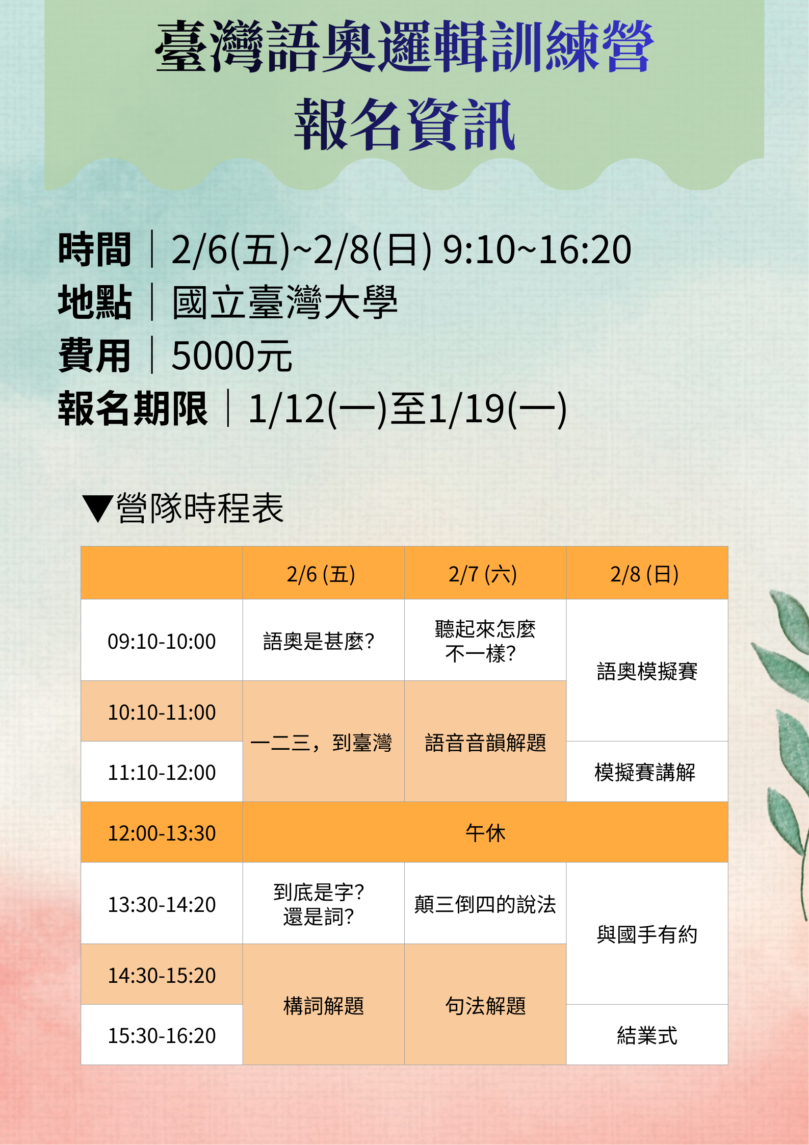 解題營報名與繳費期限:1/12 – 1/19|費用 5000 元